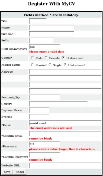 <h:outputText value=" "/><h:message for="dateOfBirth" styleClass="formUserError"/>
