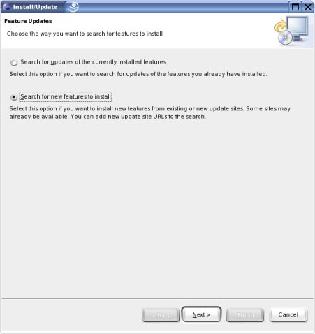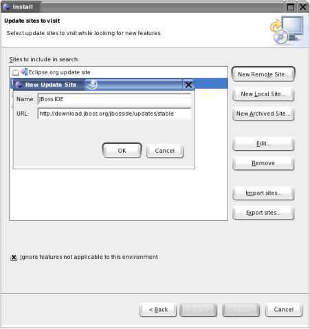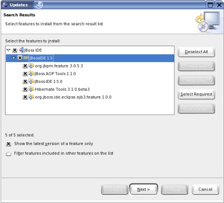 the Install dialog. Eclipse connects to the updates at JBoss, and