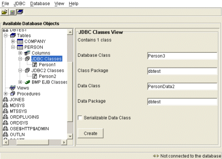 To create a class, we need to drill down the database tree, to select the database object for which a class is to be created.