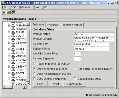 When the above command is issued, JDatabase Wizard starts up, and attempts to open the project file MYPROJECT.j3