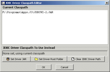 The above would be used if you needed to setup your JDBC driver classpath separately. The classpath to your preferred JDBC driver jar or folder can be set from within the Wizard.